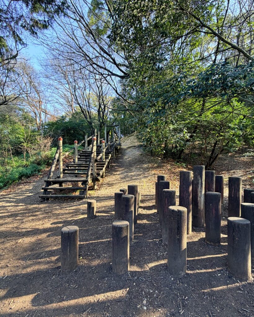 一方、南エリアの森の散策路はややアップダウンがあり、土の感触を踏みしめながら歩くコース。平坦な周回路とはひと味違った雰囲気です。
