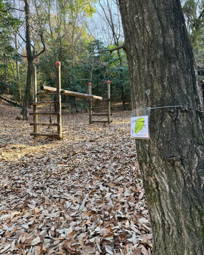 森の中にあるアスレチックで冒険気分