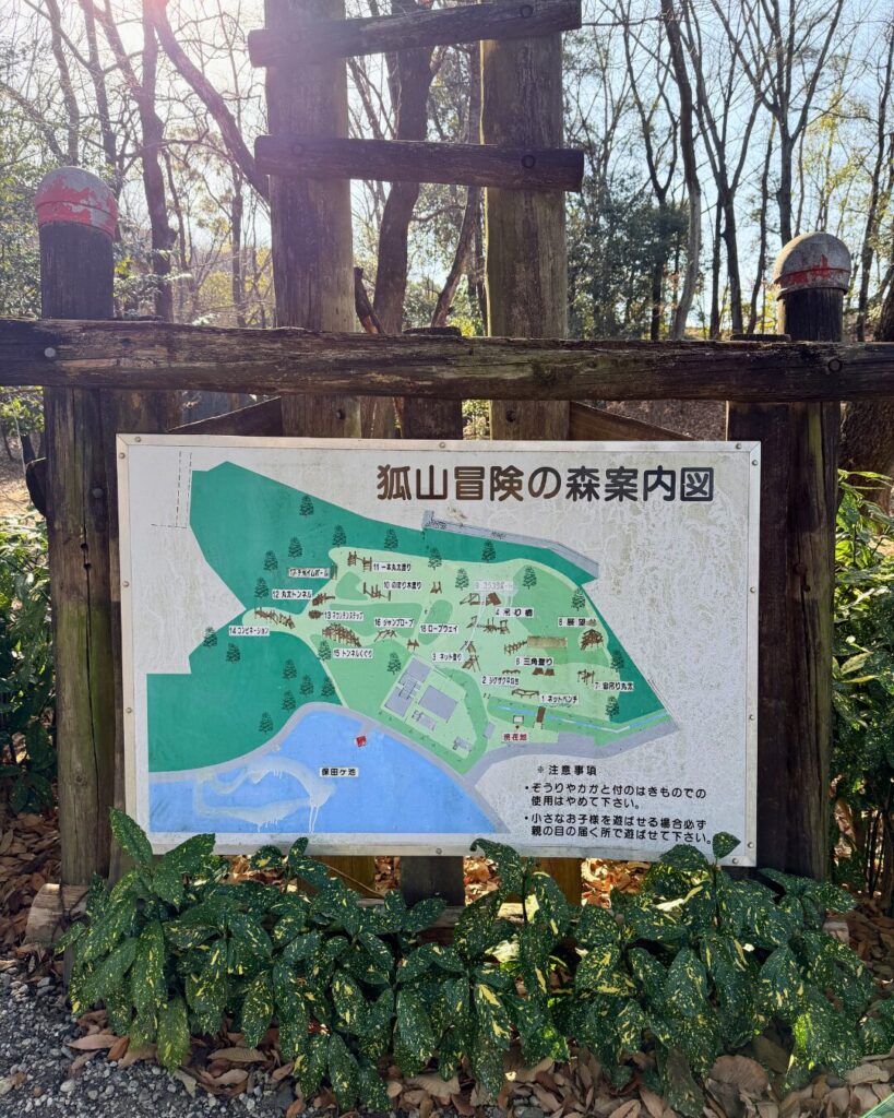 入口の案内板を見ると、かつては今よりも多くの遊具があったようで、現在は半数ほどに減っている印象です。