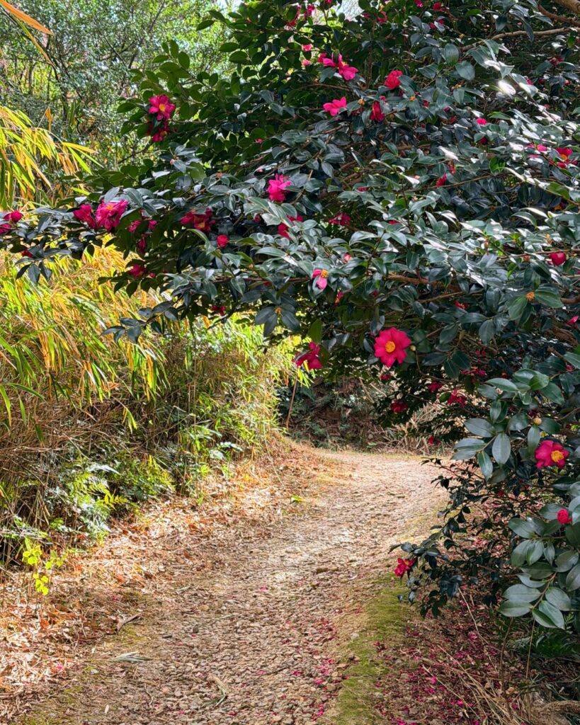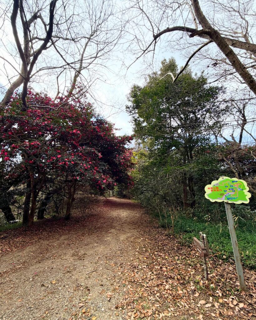 【ロマン小径入口(西駐車場側)】椿がたくさん植えられています