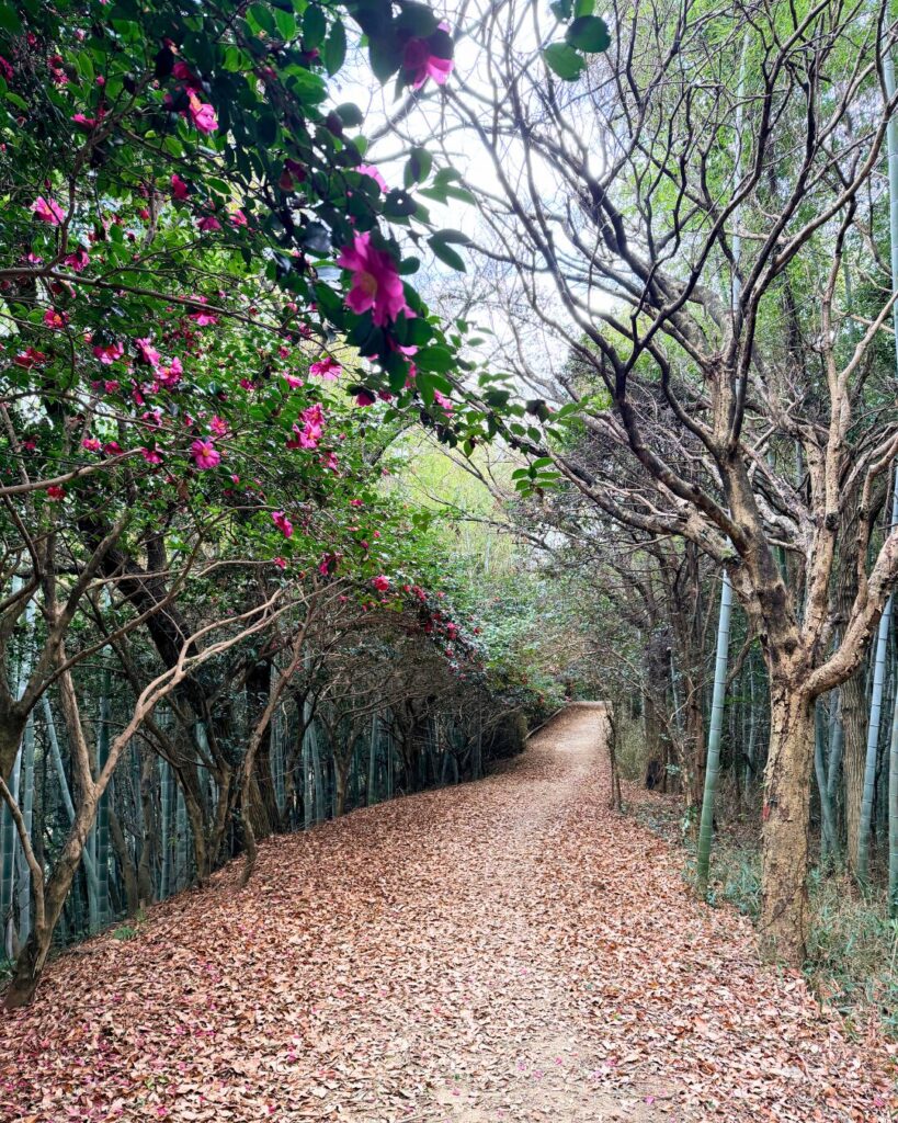 園内には椿が多く植えられ、殺風景になりがちな冬でも鮮やかな赤い花を楽しめます。