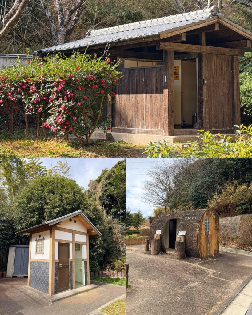 【トイレ】東側の公園(上)、頂上広場(左下)、西側駐車場(右下)