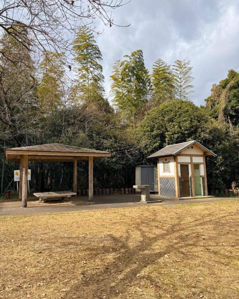 【頂上広場】トイレと東屋があります。水道も使えますよ