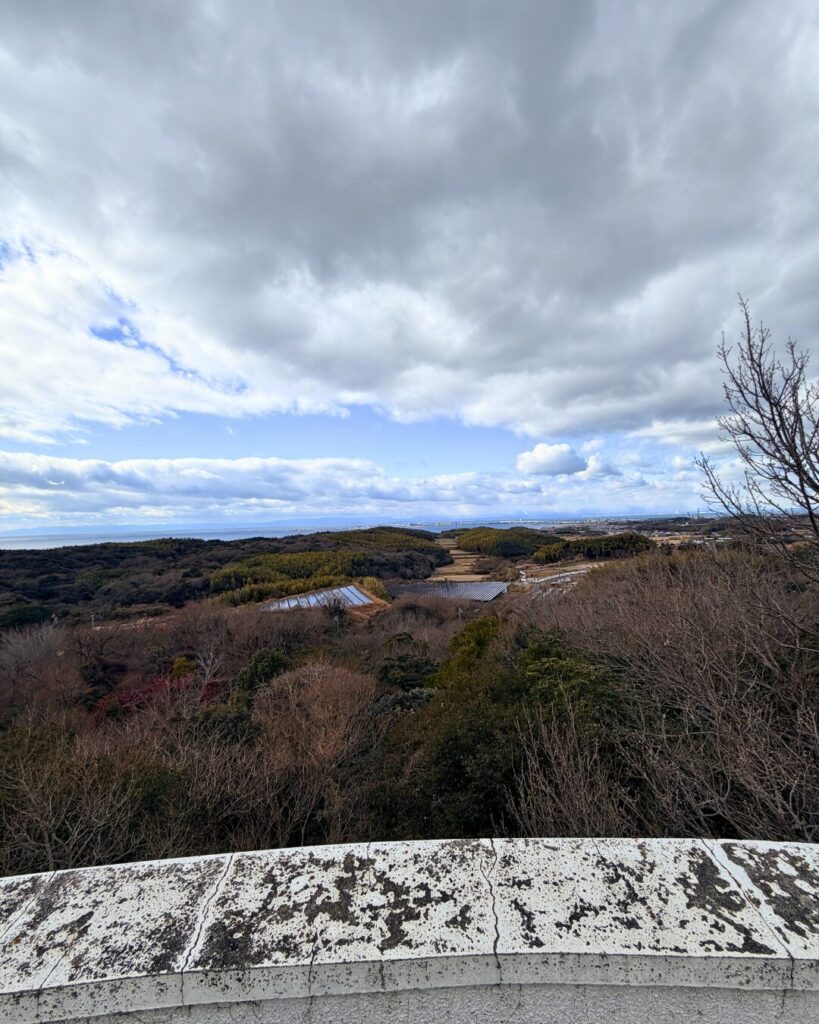 桧原(ひばら)公園には背の高い展望台があり、セントレアをはじめとした伊勢湾方面(西)から名古屋方向(北)、伊良湖方向(南)が眺められます。