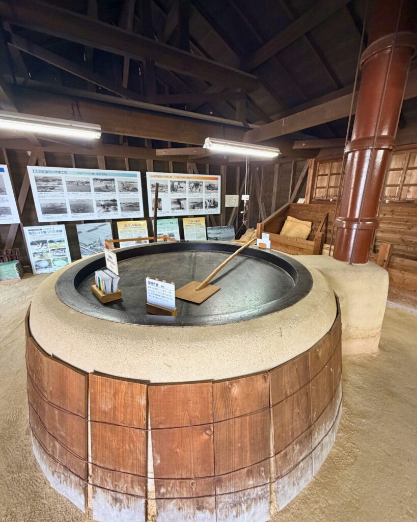 塩焼き窯や、焼き上がった塩を乾燥させる居出場(いだしば)など、当時の製塩工程を再現した道具が展示されています。
