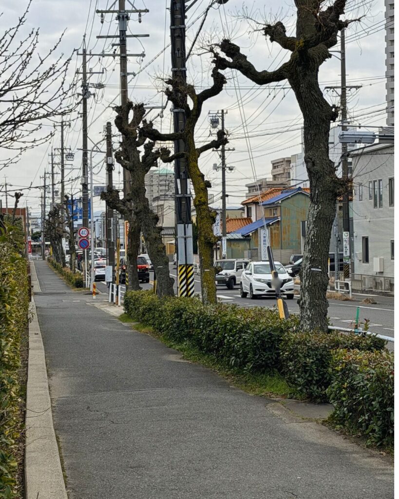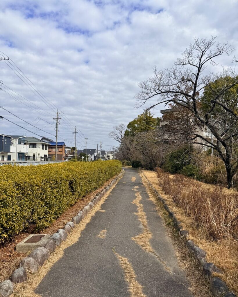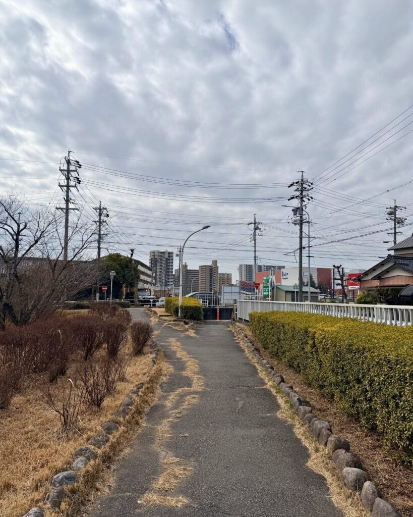 【遊歩道】ららぽーと安城の東口から遊歩道に出て、北に進みます