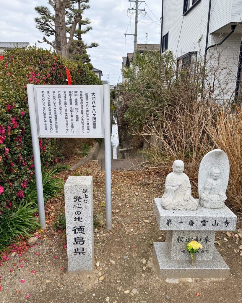 安城大池の周囲には、四国八十八か所になぞらえて弘法大使や各地のご本尊が祀られています。
