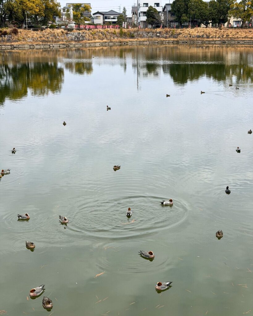 【安城大池に浮かぶカモ】寒い時期定番の風景ですね