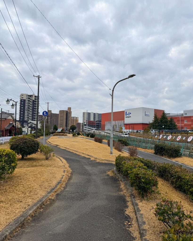 ららぽーと安城の東口から歩道に出ると、大池公園までは信号を渡らずにアクセスできます