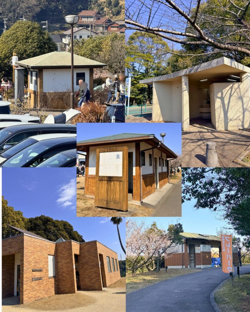 トイレはふれあい広場や梅の館(館内)、物見やぐら付近や佐布里池駐車場、水の生活館(館内)やその駐車場にあります。いずれも掃除はされていますが、館内トイレの方がきれいです。