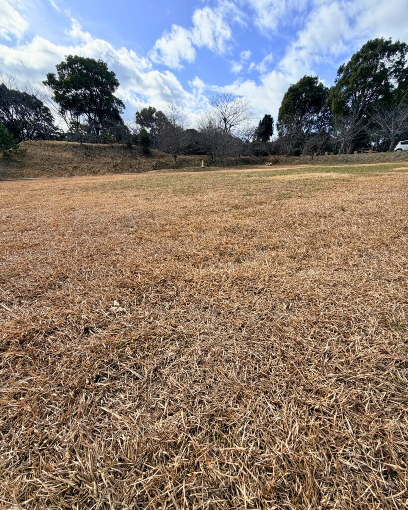 駐車場から1段下がったところに芝生広場があります(30m×30mほど)。