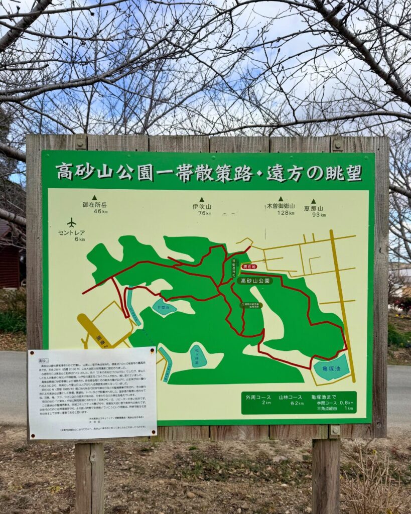高砂山には歩ける道がいくつかありますがオススメの一つは亀塚池をめざすルート(約2km)。