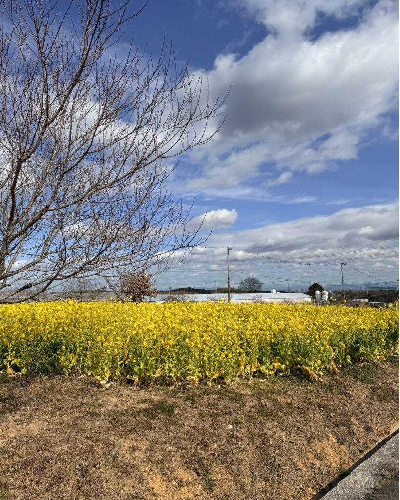 展望台の近くには御岳神社や花壇が、駐車場を挟んだところに菜の花畑があります。