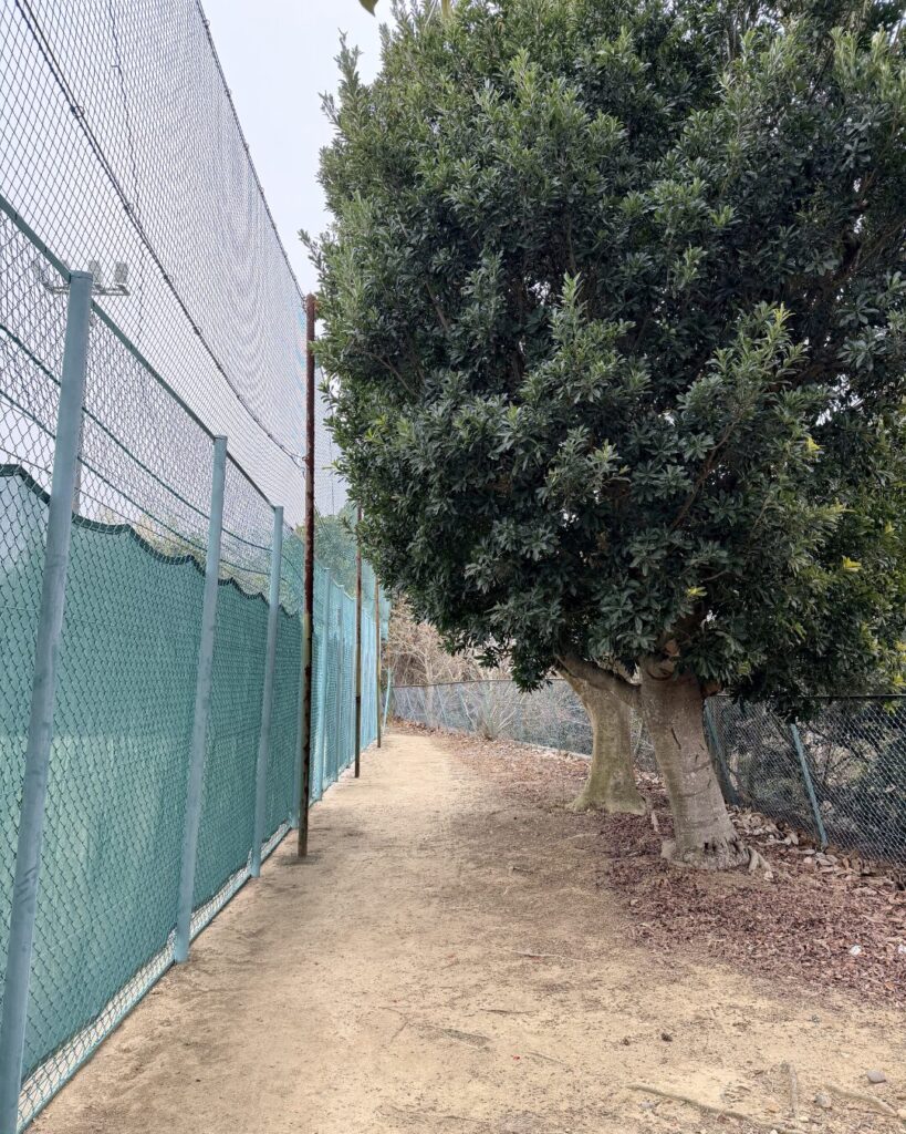 【テニスコート裏の通路】ちょっと不安になる狭さです
