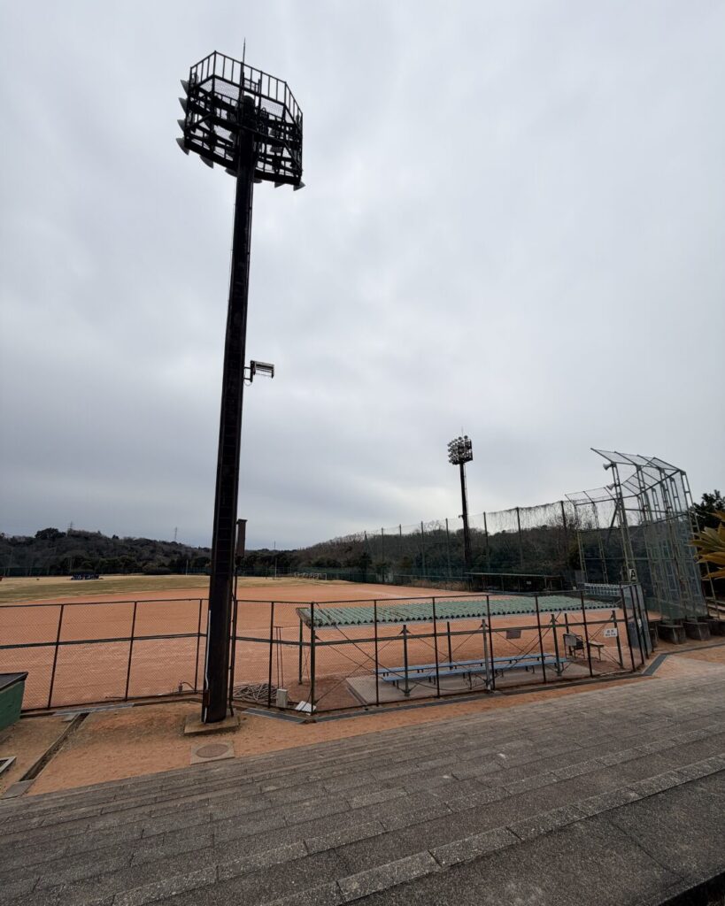 野球場2面として利用できる広さがあり、サッカーコートも設営可能な大型グラウンドがあります。エリアごとに予約できるため、用途に応じた利用が可能です。