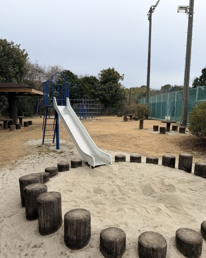 テニスコートの裏には小さな公園があります。遊具があり水道も利用できます
